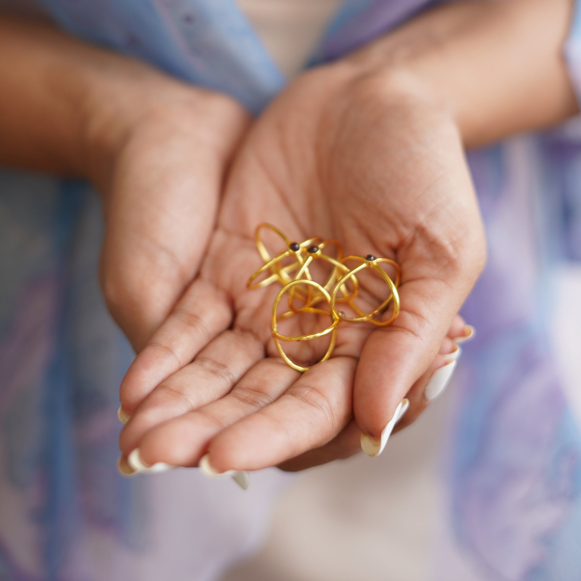 Please note that all our jewelry is handmade. This means every piece is unique and might have its own small imperfections since all pieces are hand cut, soldered, and plated manually by our gifted karigars.