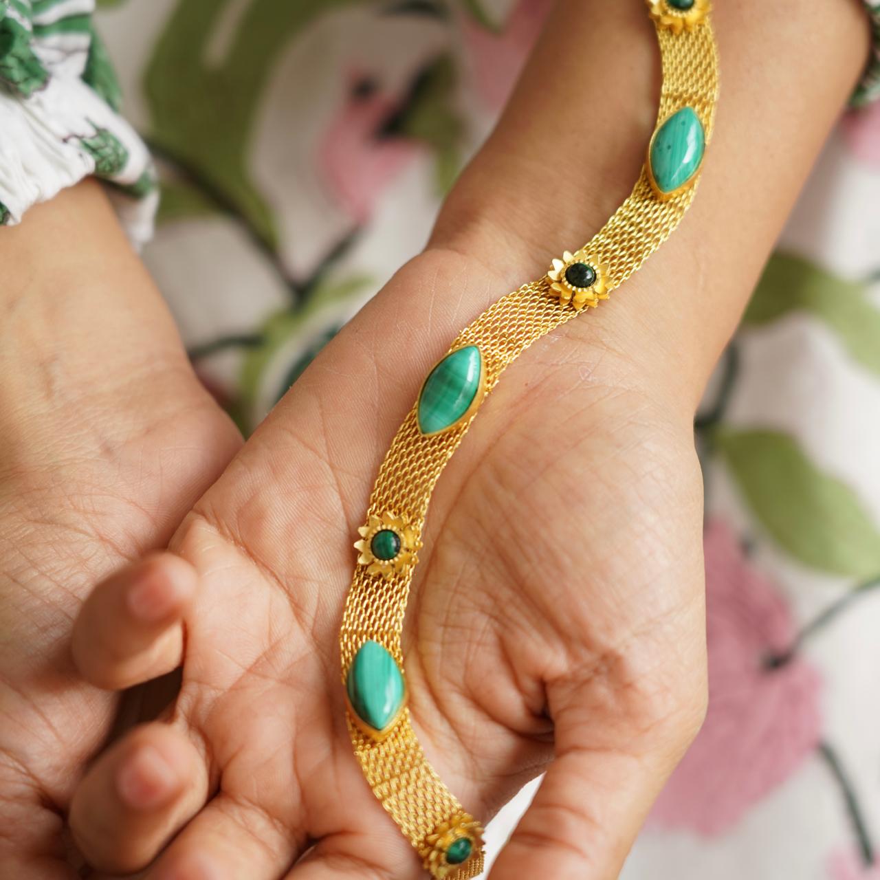 Please note that each stone is natural and will appear with different shades of green along with unusual striations. No two stones will be alike. What has been photographed may not be what is sent to you in terms of stone colourations. Images are for reference only. The piece sent to you will be same in design but different in the stone colours due to natural formations of said stones.
