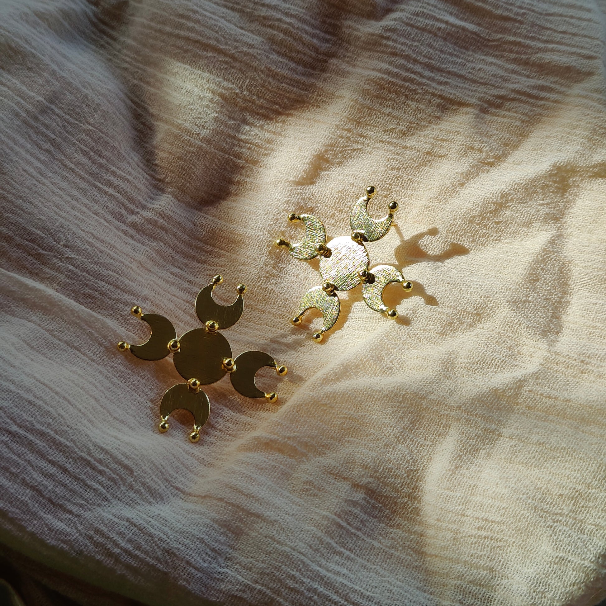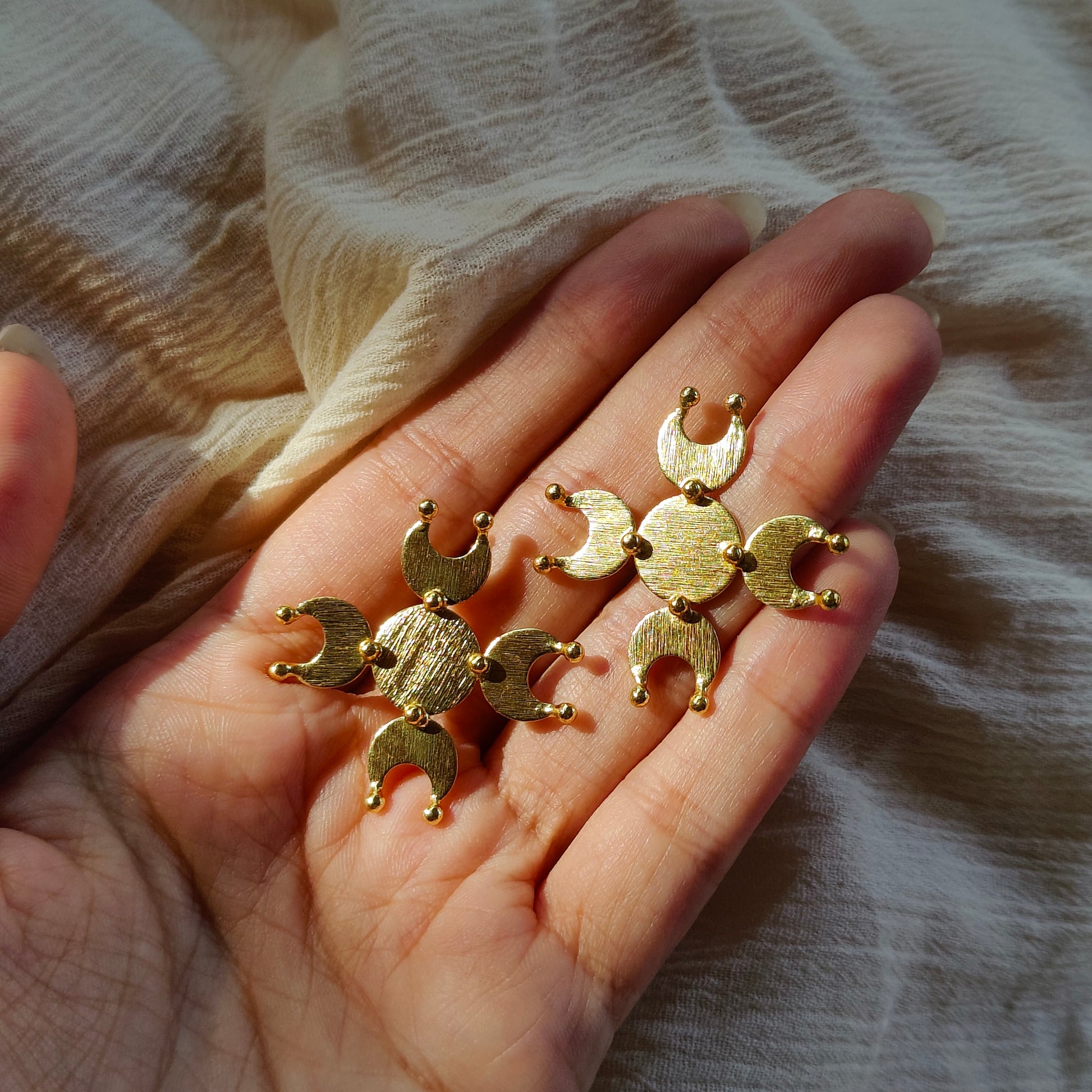 Statement studs, anyone? The gorgeous Asmita earrings are one of a kind to say the least. Featuring a textured full moon surrounded by four crescent moons, these unique studs from our Som Kamal collection are bound to captivate anyone you meet and start a conversation.