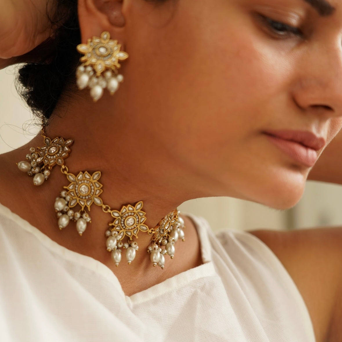 Please note that all our jewelry is handmade. This means every piece is unique and might have its own small imperfections since all pieces are hand cut, soldered, and plated manually by our gifted karigars.