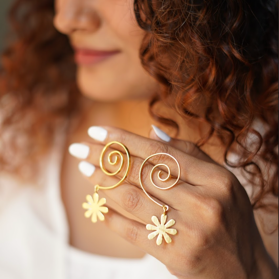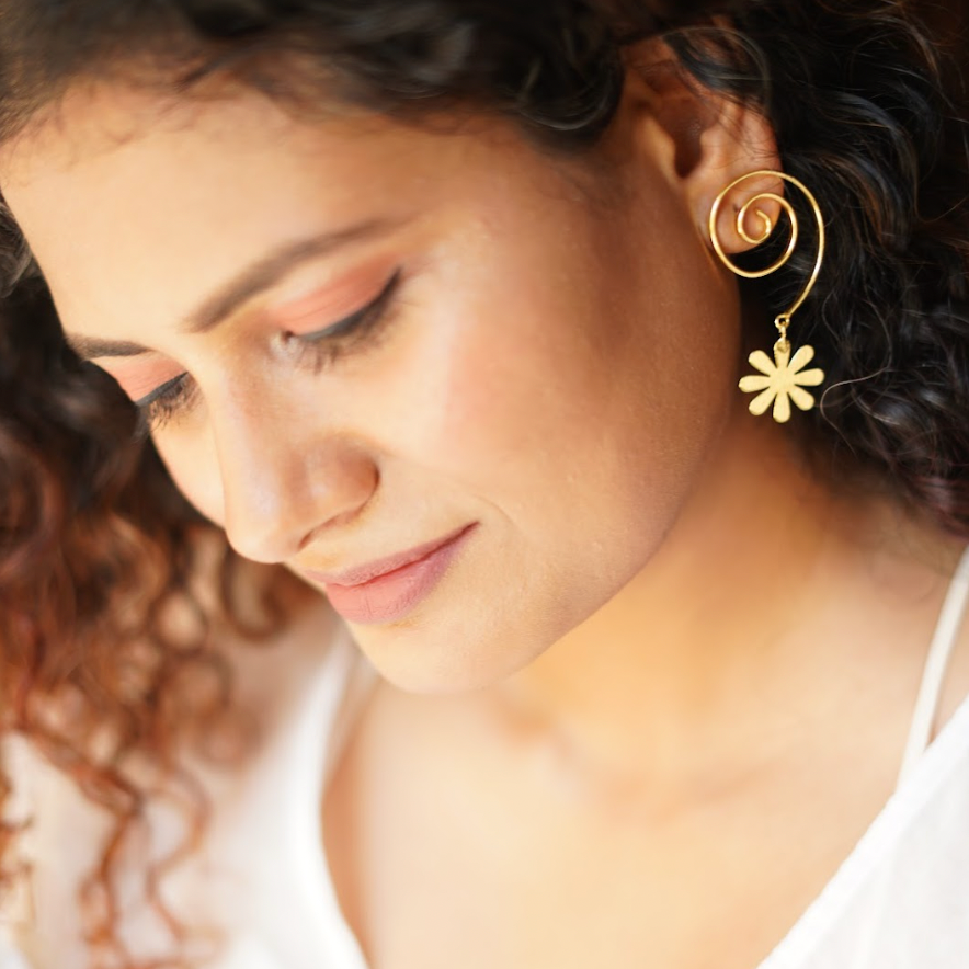 Pretty, dainty floral spiral earrings from our Basanti Collection