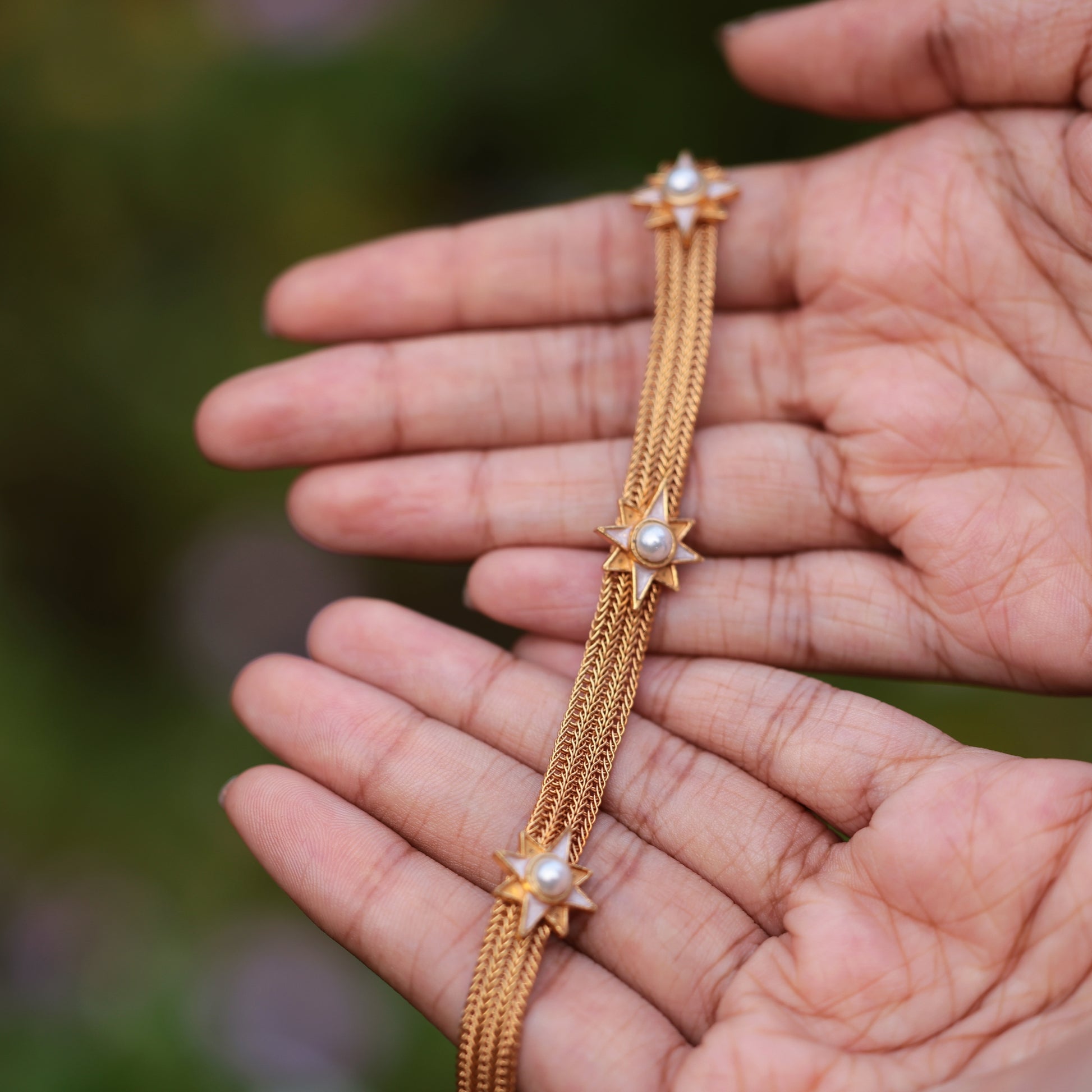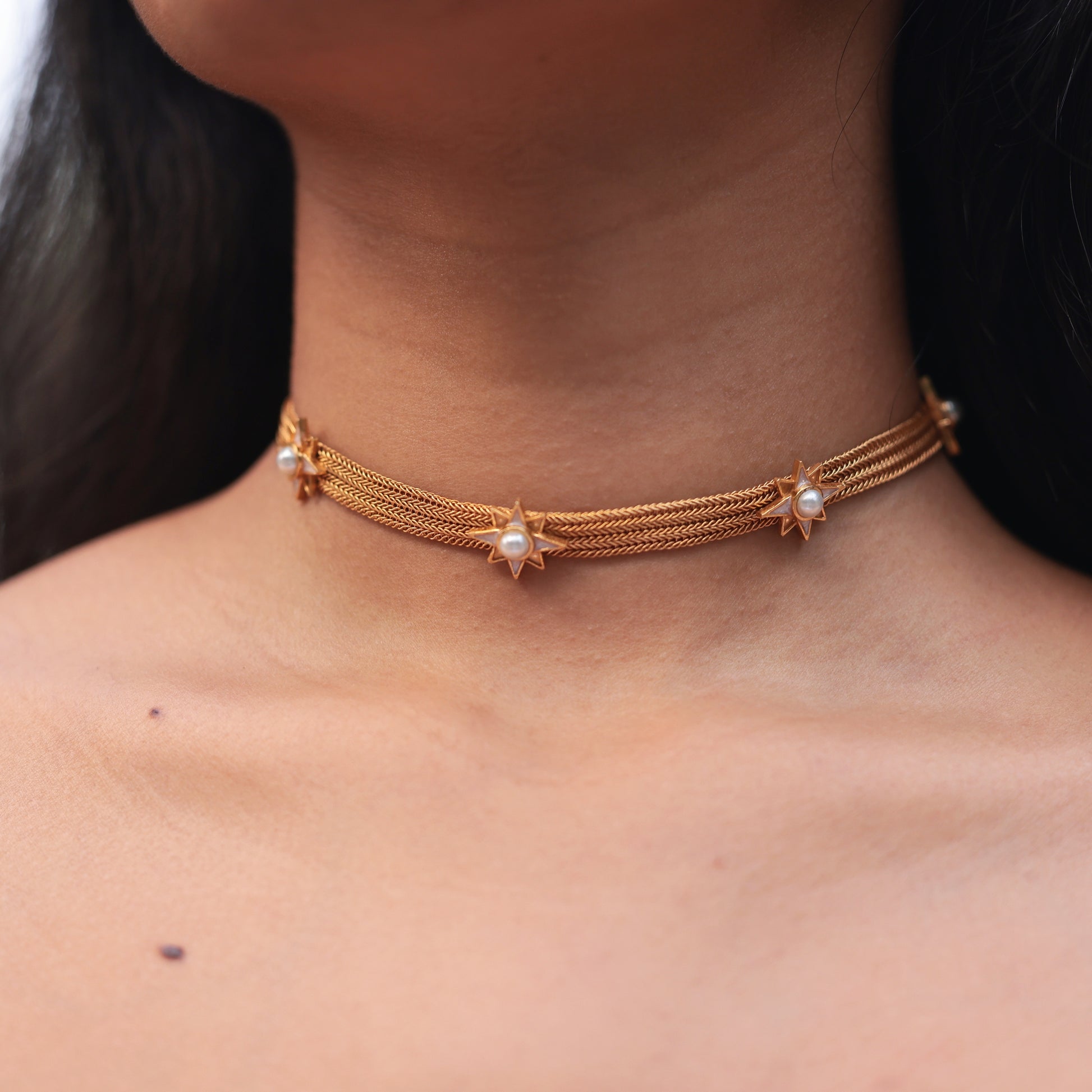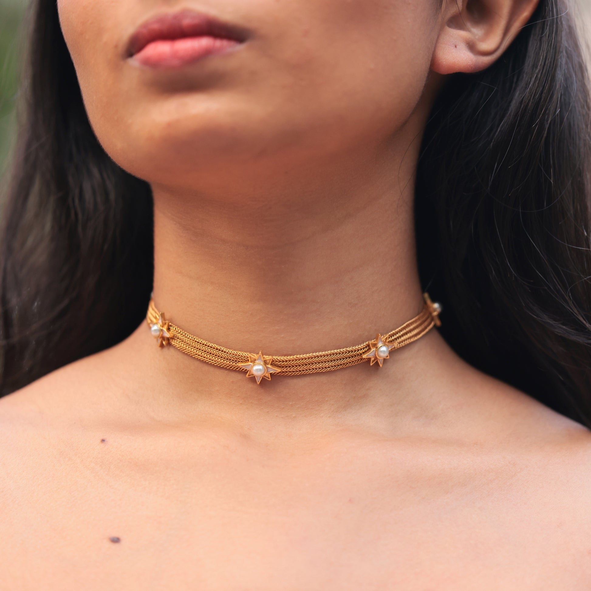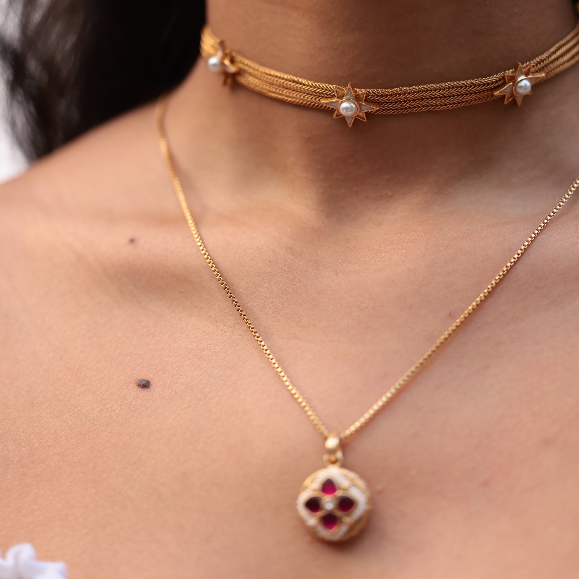 Captivate attention and make a cosmic statement with our Choti Tara Necklace. No matter your jewelry aesthetic, this piece is one to love love love. Let the dazzling radiance of the stars and your inner celestial light shine through with five choti tara motifs made with ivory enamel and faux pearls. We just know this one is going to be a favorite in your jewelry box!