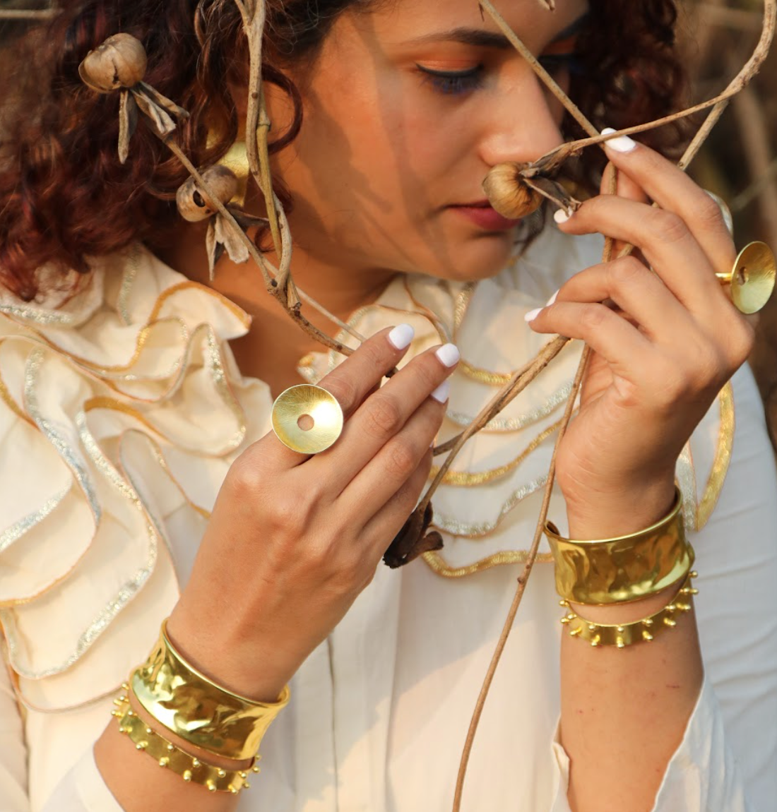 Please note that all our jewelry is handmade. This means every piece is unique and might have its own small imperfections since all pieces are hand cut, soldered, and plated manually by our gifted karigars.