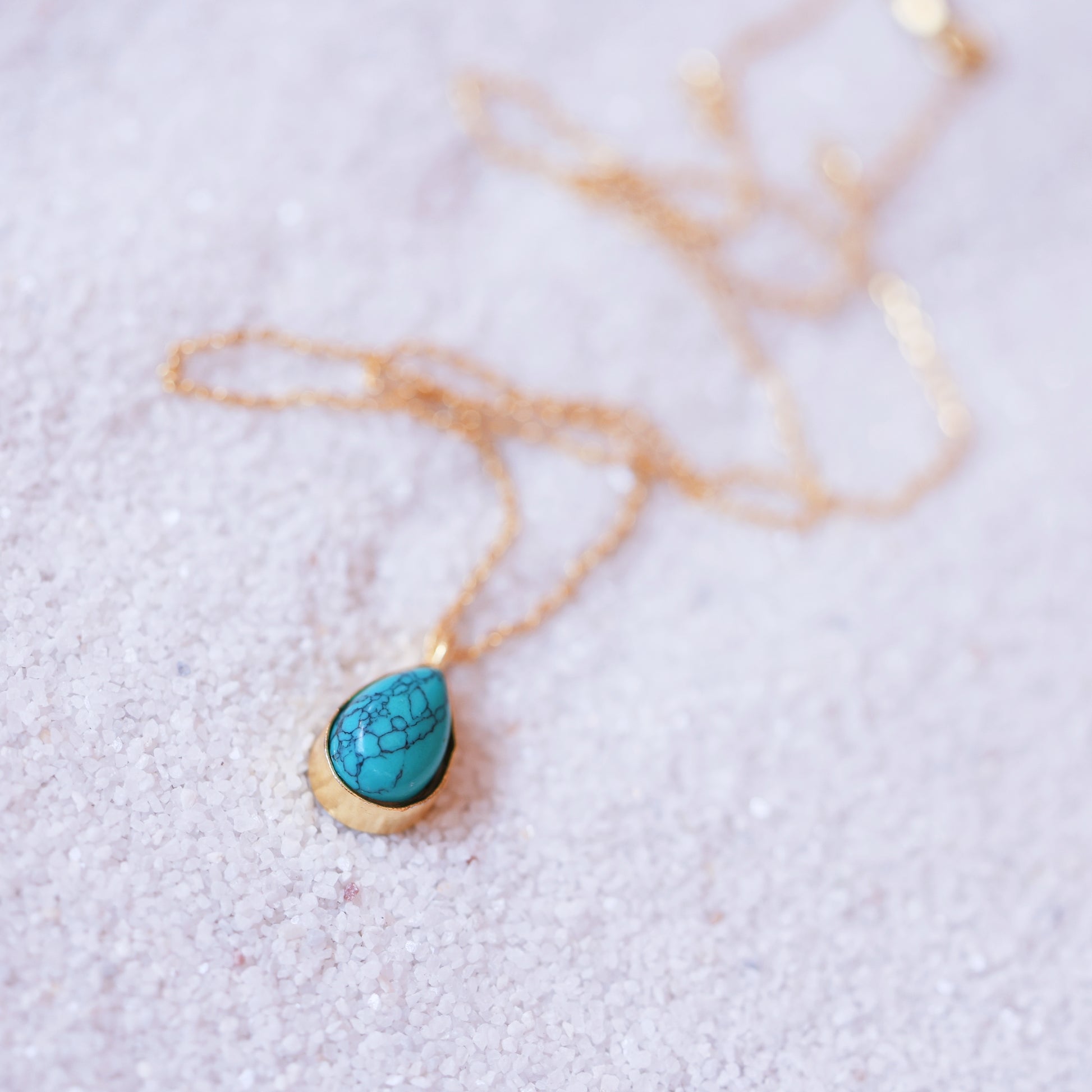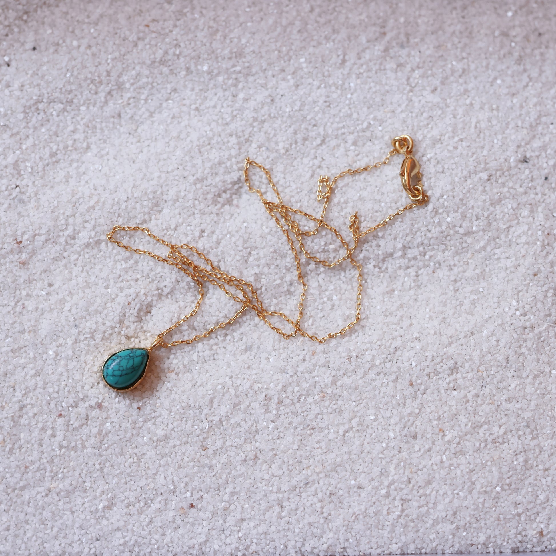 This minimal and dainty necklace features a vibrant turquoise stone. Handcrafted with Indian inspiration, it adds a touch of elegance to any outfit.