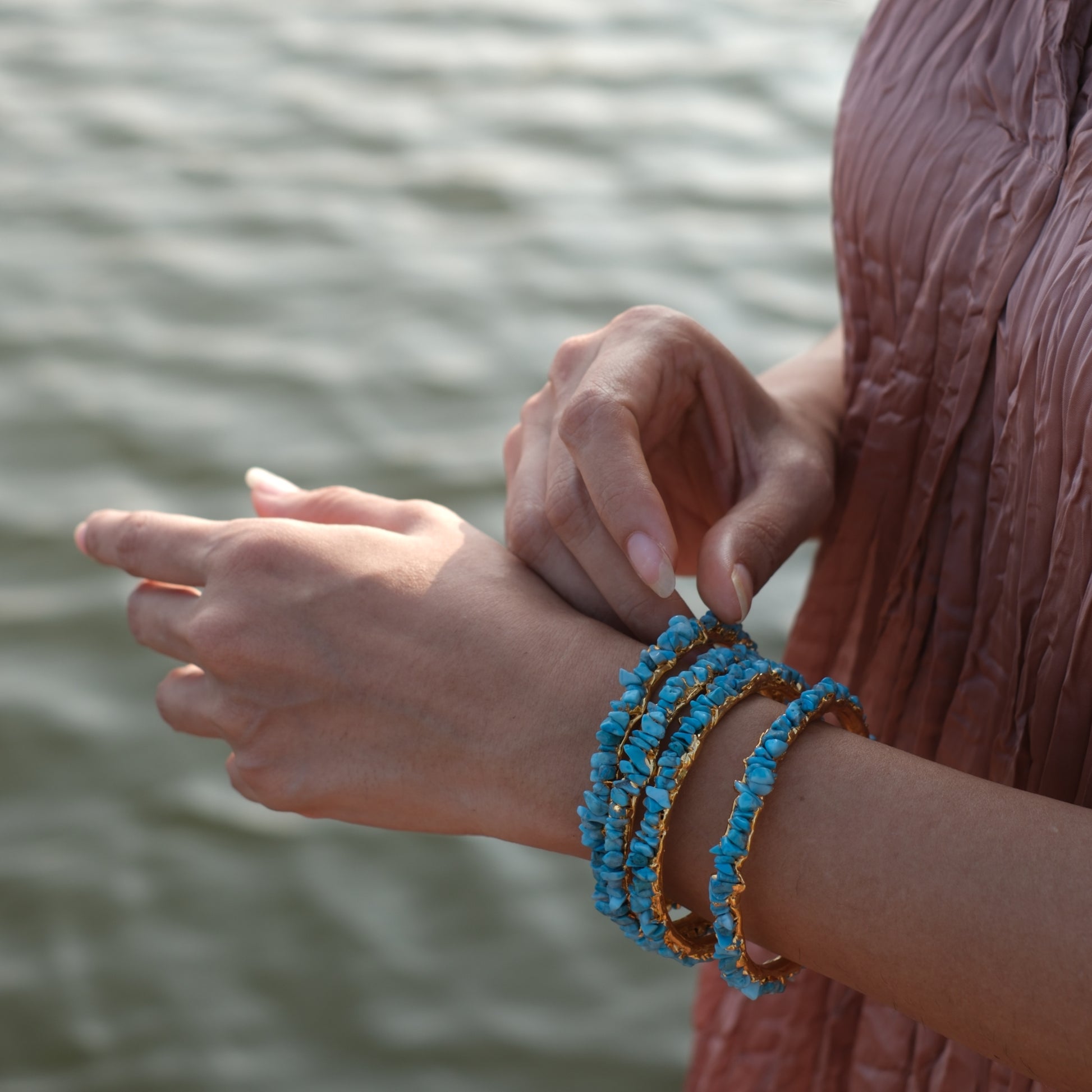 Beautiful electroplated turquoise bangle. each piece is very unique
