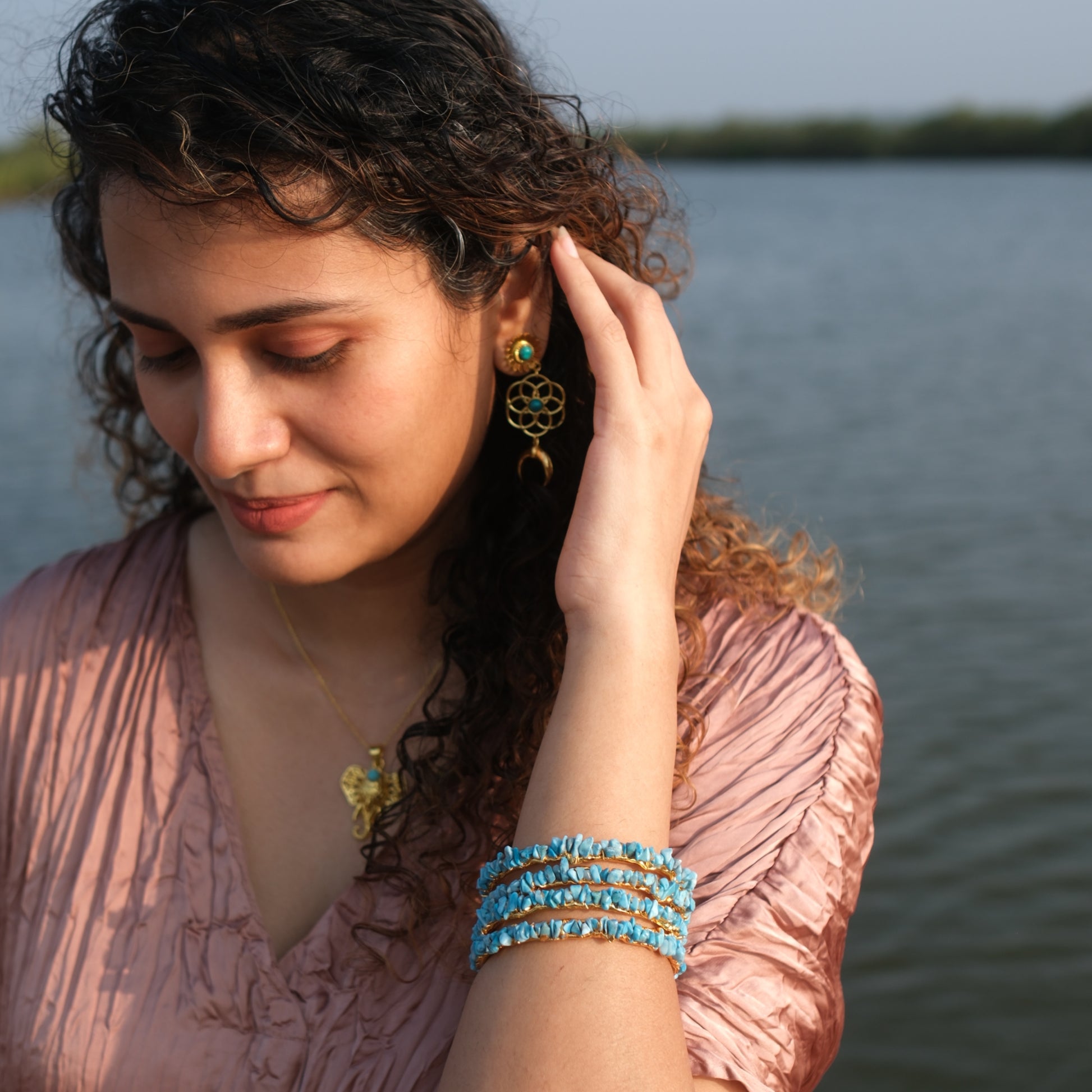 Please note that all our jewelry is handmade. This means every piece is unique and might have its own small imperfections since all pieces are hand cut, soldered, and plated manually by our gifted karigars.