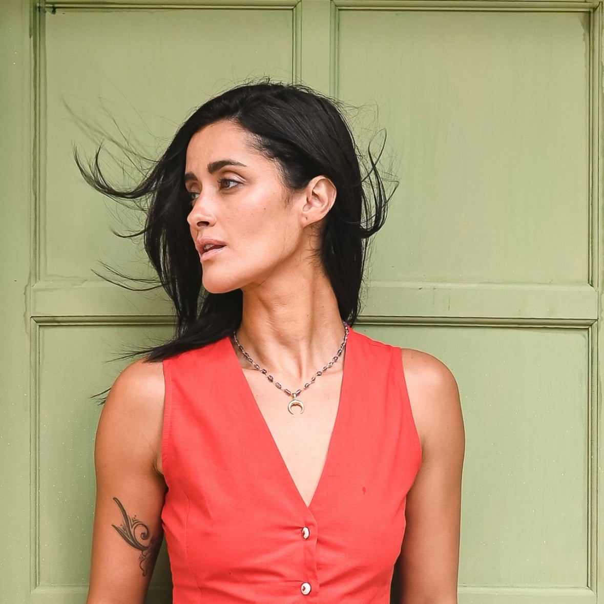 This beautiful piece of jewelry is water/sweat resistant and tarnish resistant. However, keep away from moisture when not in use, to increase the lifespan of the gold polish. We also recommend wearing your jewelry last while dressing to keep it away from damage caused by makeup, lotions, perfumes, etc.