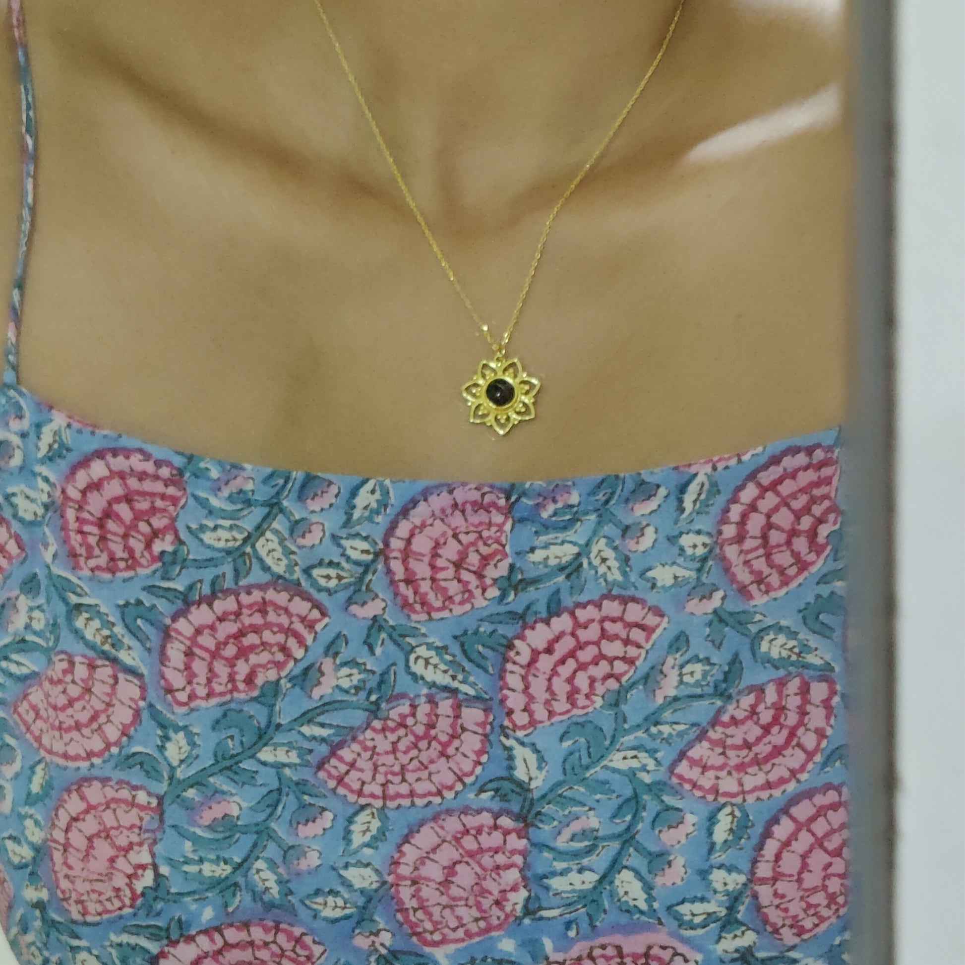Please note that all our jewelry is handmade. This means every piece is unique and might have its own small imperfections since all pieces are hand cut, soldered, and plated manually by our gifted karigars.