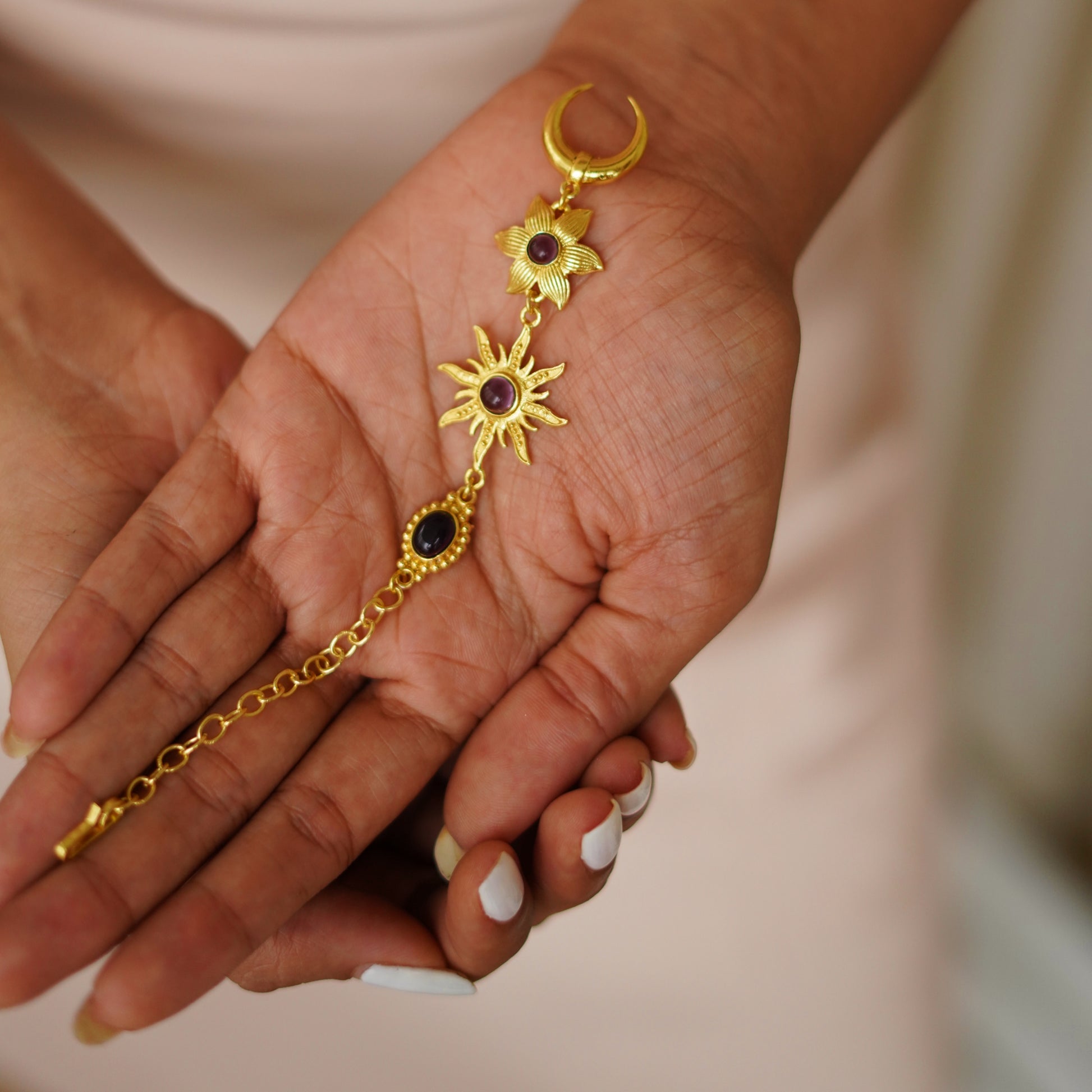 Please note that all our jewelry is handmade. This means every piece is unique and might have its own small imperfections since all pieces are hand cut, soldered, and plated manually by our gifted karigars.