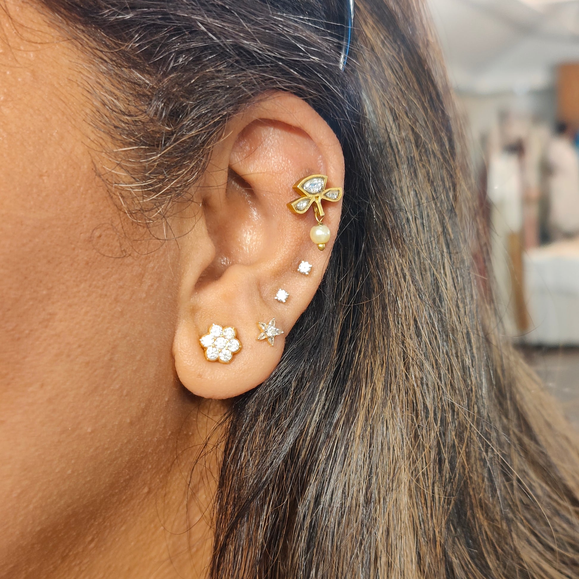 Talk about dainty! This cute pair of studs is made of glass polkis with an antique finish and sits beautifully on your primary or secondary piercings.