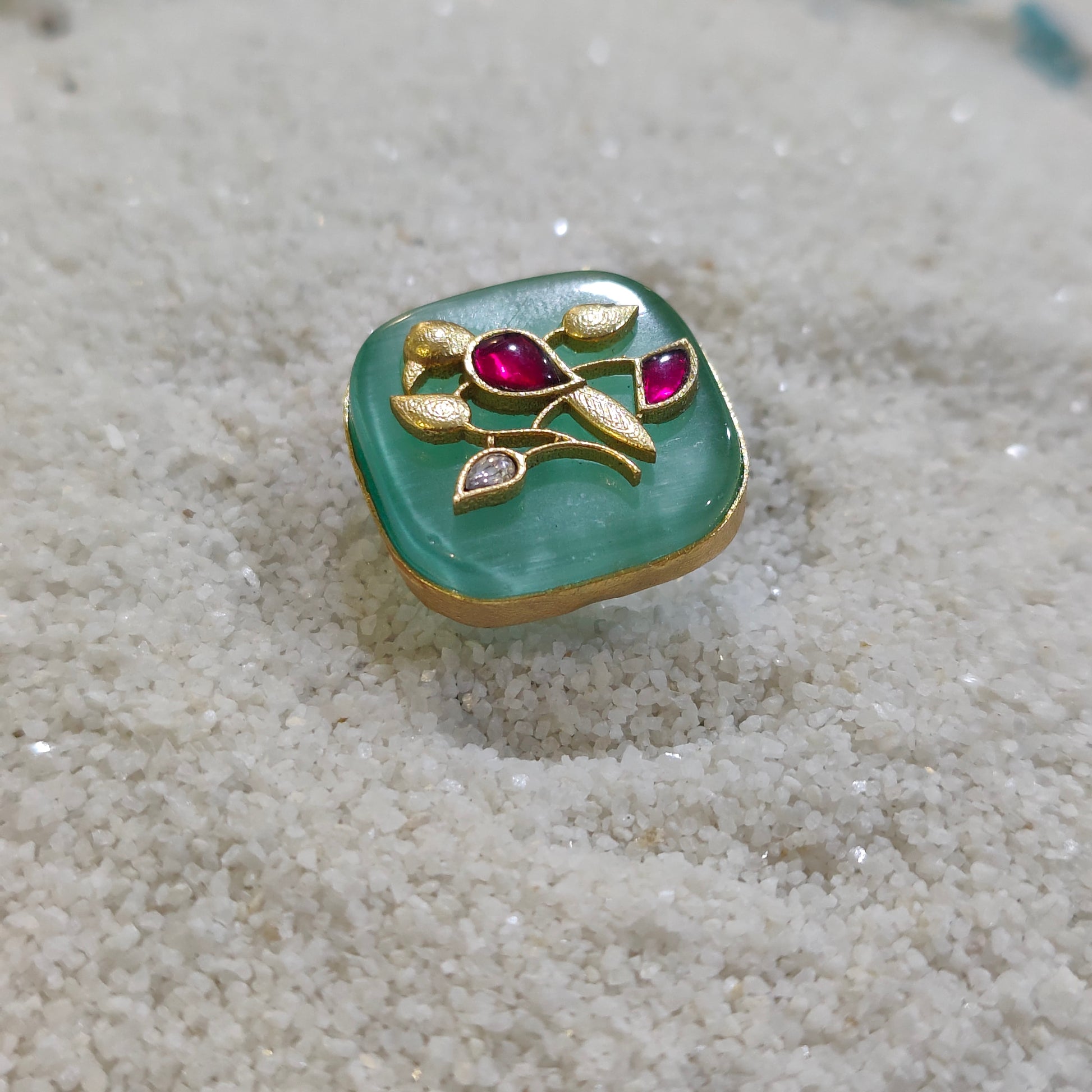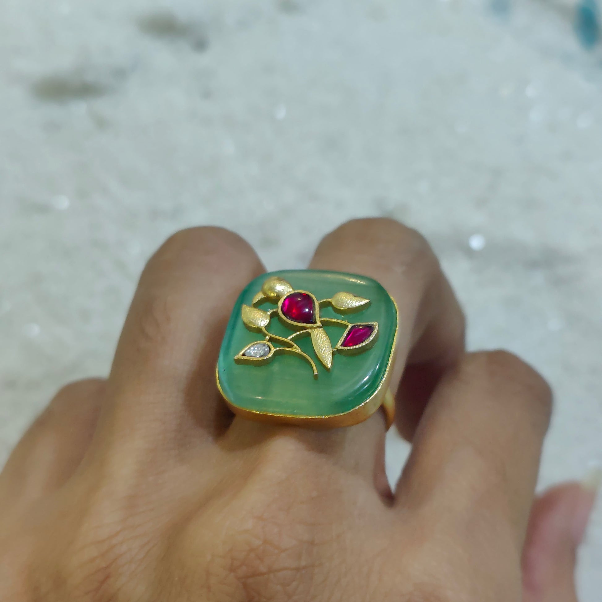 Please note that all our jewelry is handmade. This means every piece is unique and might have its own small imperfections since all pieces are hand cut, soldered, and plated manually by our gifted karigars.