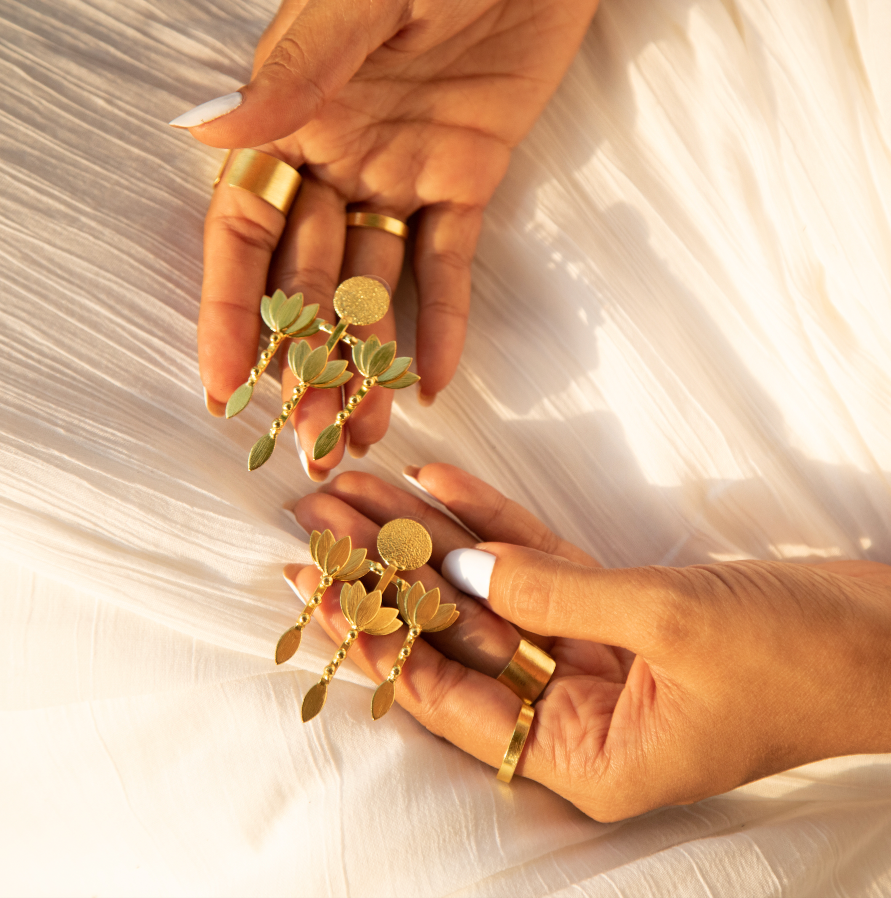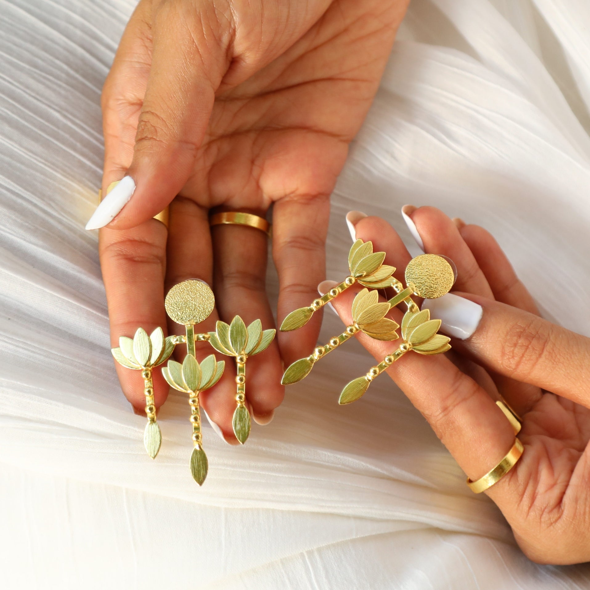 A show-stopping pair, the Mallika earrings are truly one of a kind. One of our favorites, this bestselling statement pair is one you definitely want to add to your collection. Featuring three Som Kamal charms with stems, Mallika likens a delicate bouquet of lotus flowers and perfectly frames your face no matter its shape. A massive confidence booster, to say the least, get ready to unleash your bold side and make a statement when you walk into any room with the glorious Mallika carrying you forth.