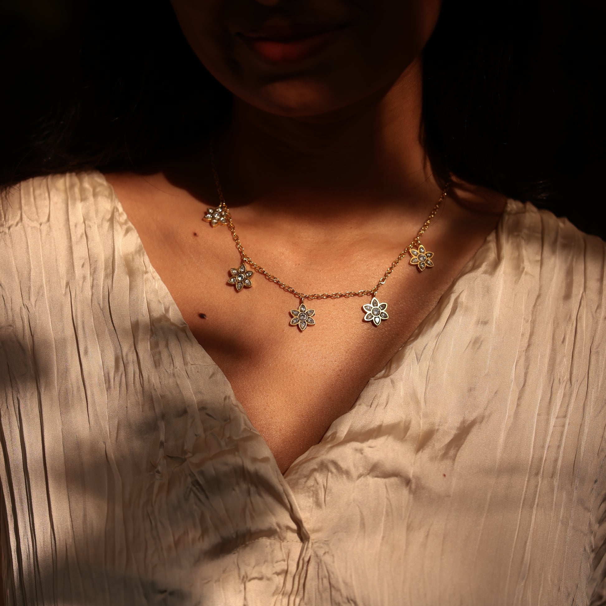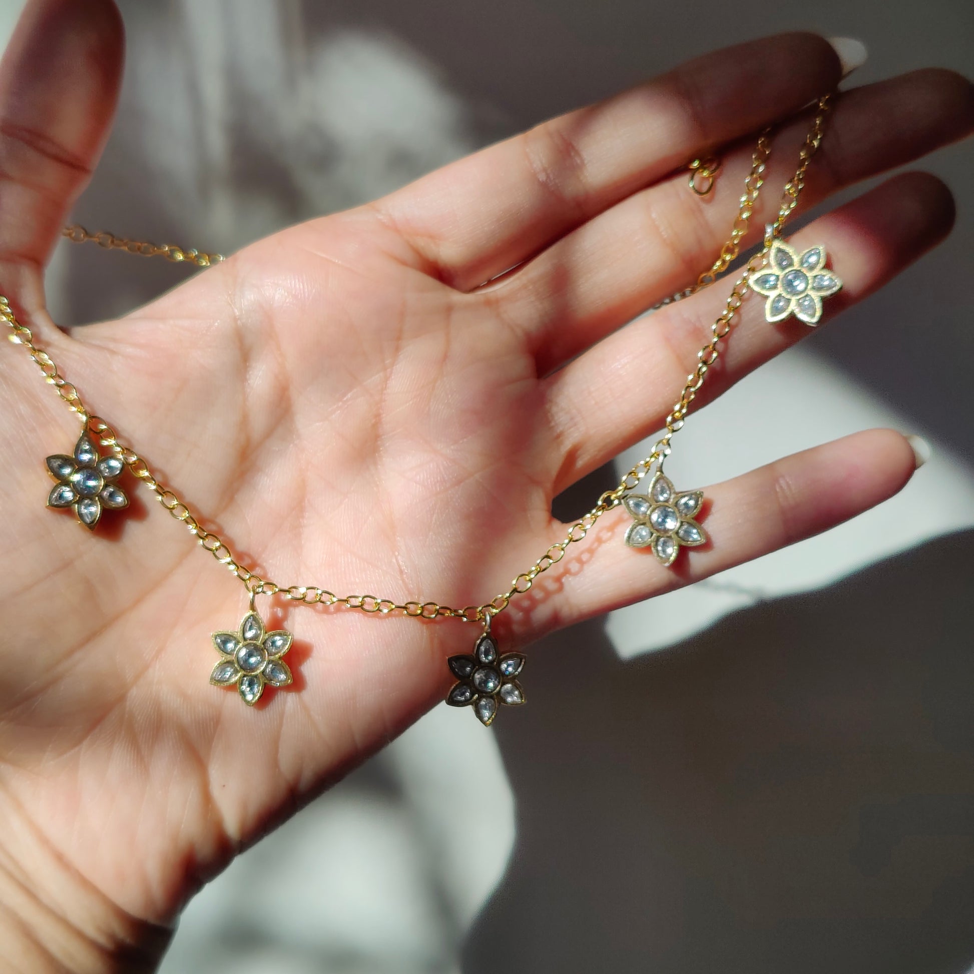 Please note that all our jewelry is handmade. This means every piece is unique and might have its own small imperfections since all pieces are hand cut, soldered, and plated manually by our gifted karigars.