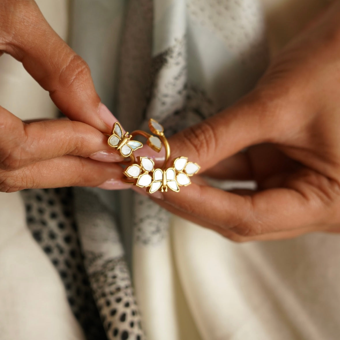 Please note that all our jewelry is handmade. This means every piece is unique and might have its own small imperfections since all pieces are hand cut, soldered, and plated manually by our gifted karigars.