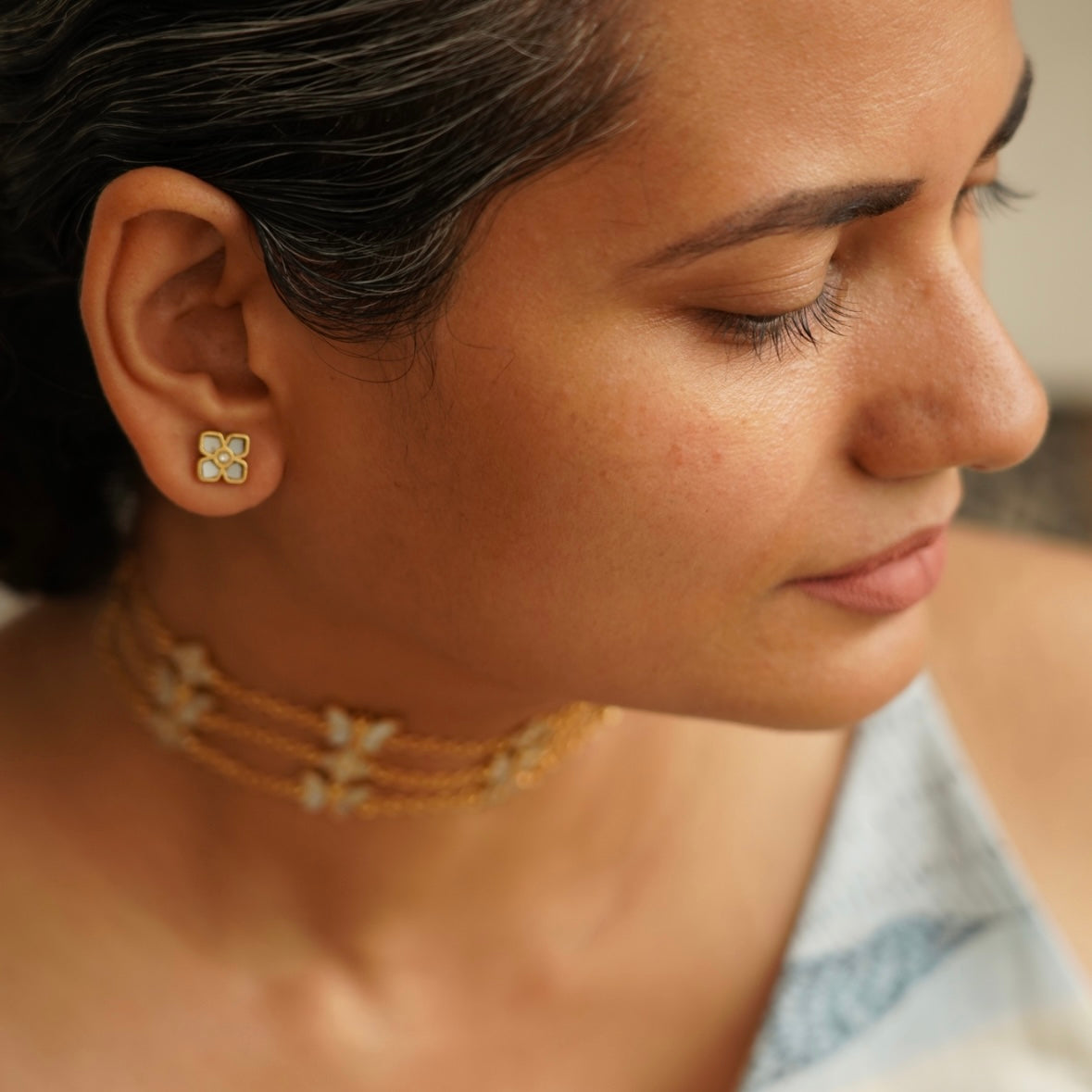 Please note that all our jewelry is handmade. This means every piece is unique and might have its own small imperfections since all pieces are hand cut, soldered, and plated manually by our gifted karigars.