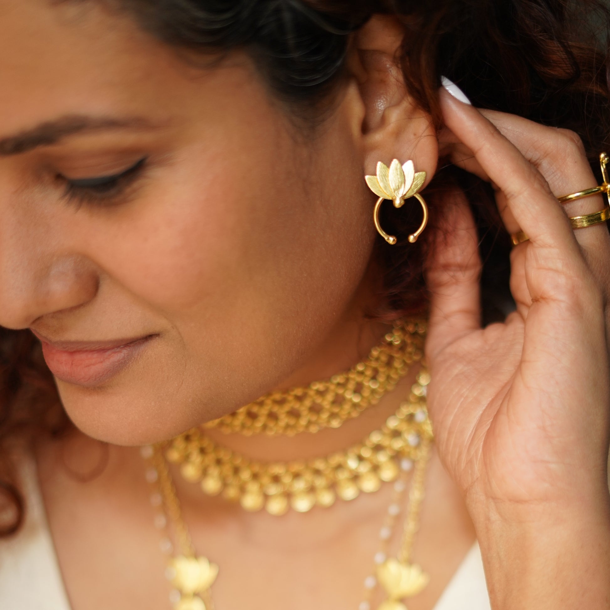 Please note that all our jewelry is handmade. This means every piece is unique and might have its own small imperfections since all pieces are hand cut, soldered, and plated manually by our gifted karigars.