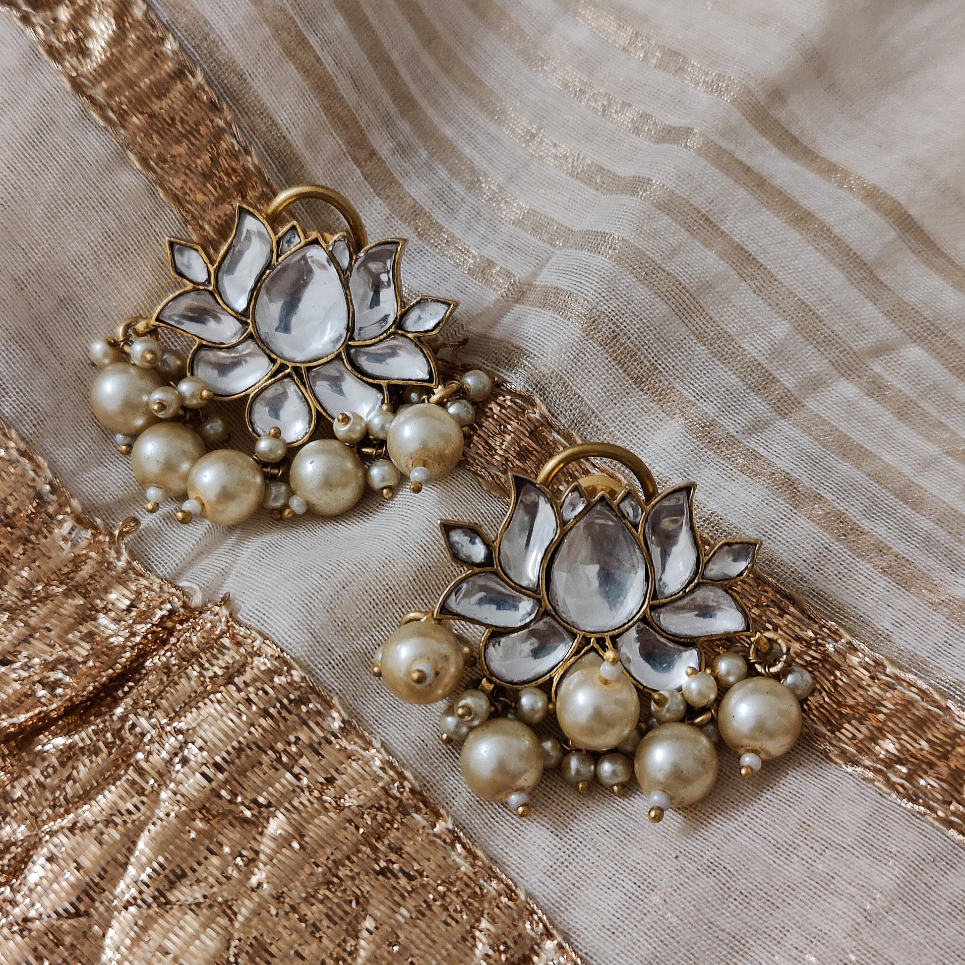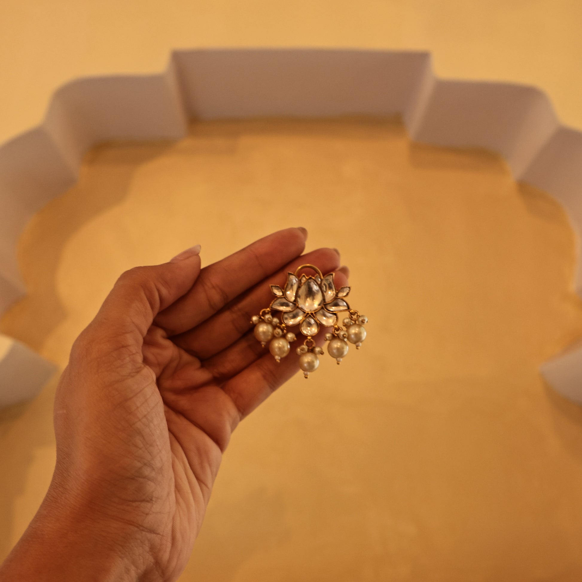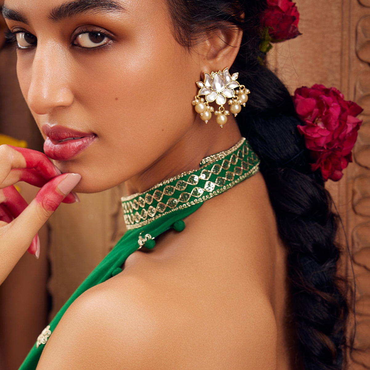 The statement studs we all need - Neerja! Did you know the lotus is a symbol of purity? Well, we think these Neerja Earrings are purely divine! Take her out on the town her own and allow her to frame your face so beautifully you won’t want to take them off. Or you can bring your A game and pair her with the Neerja Necklace and be the dazzler you truly are in any room!