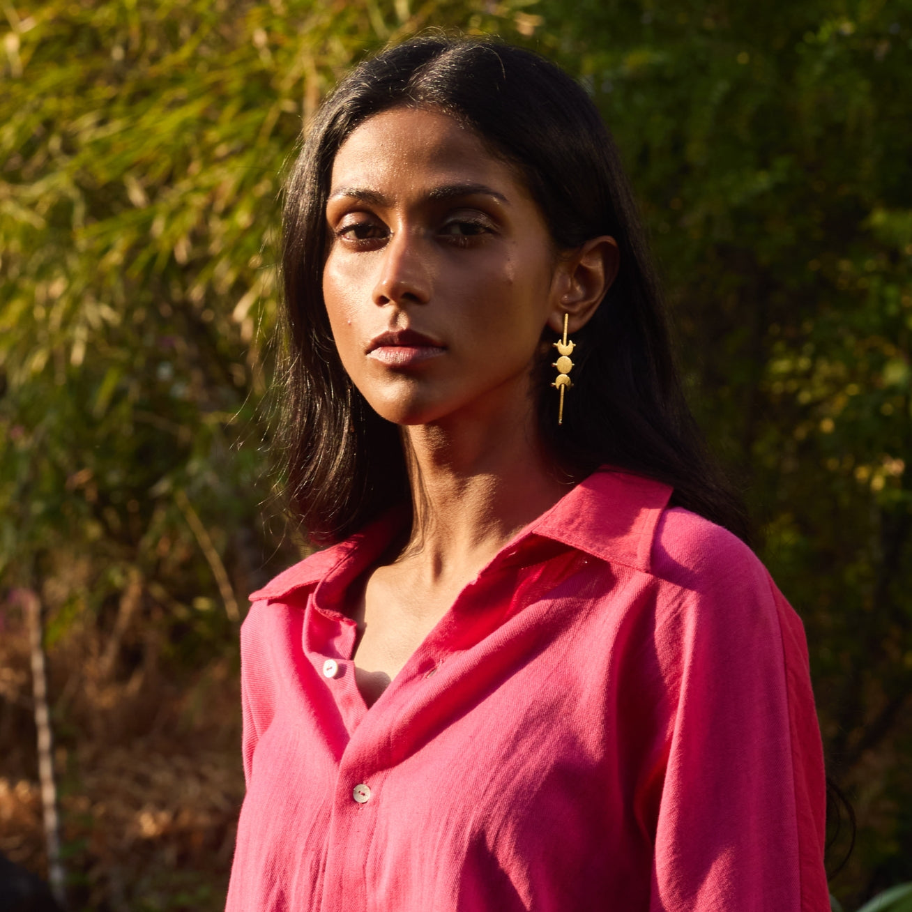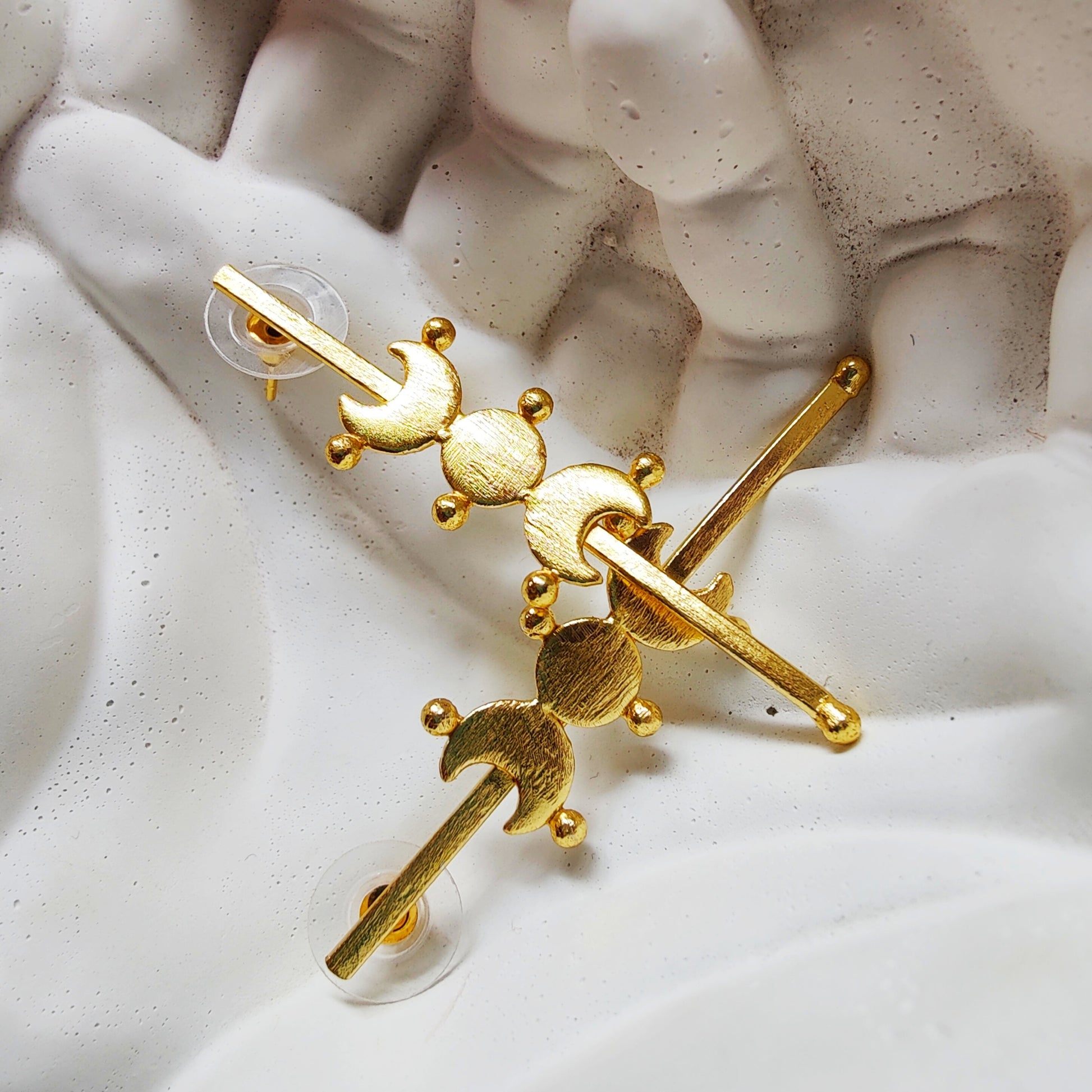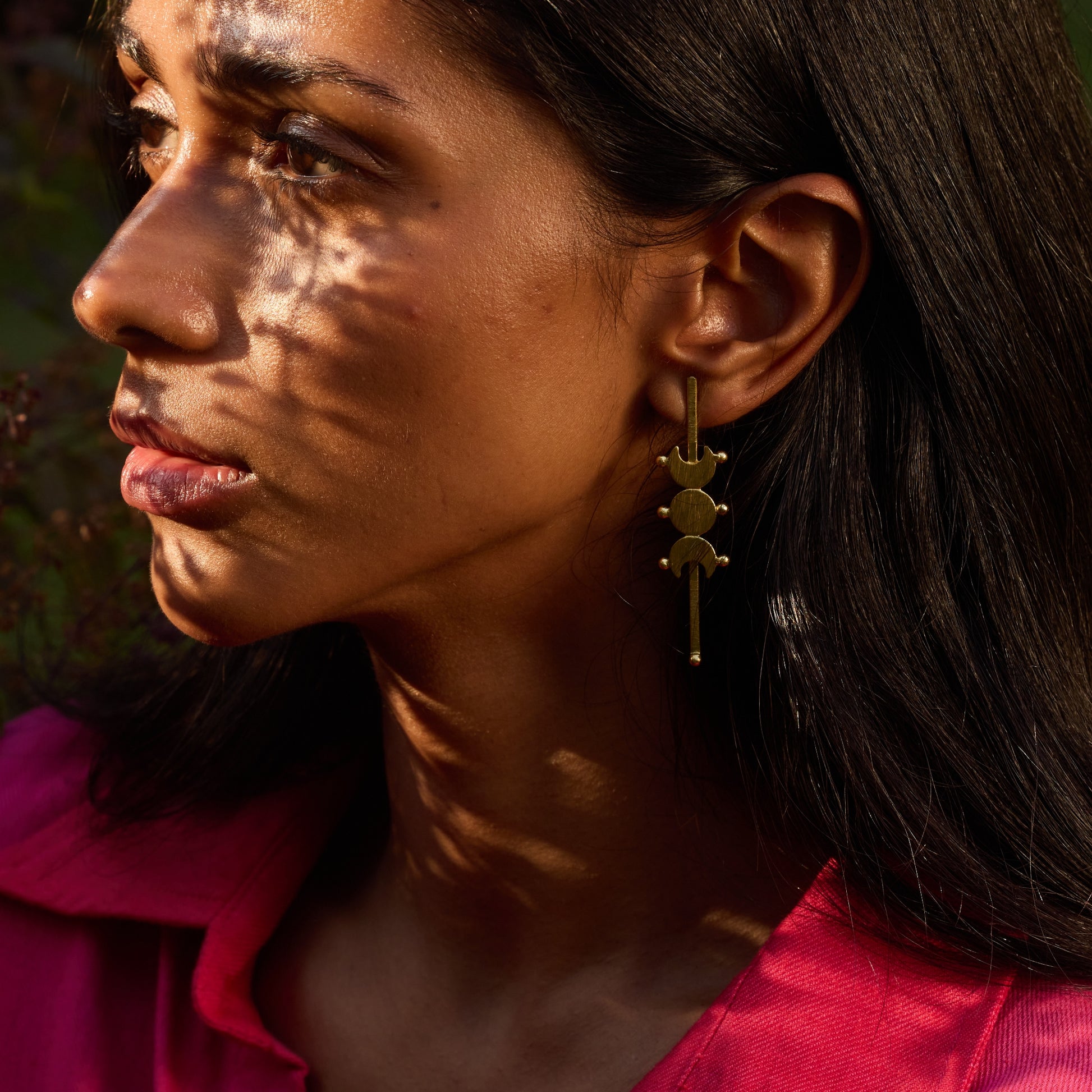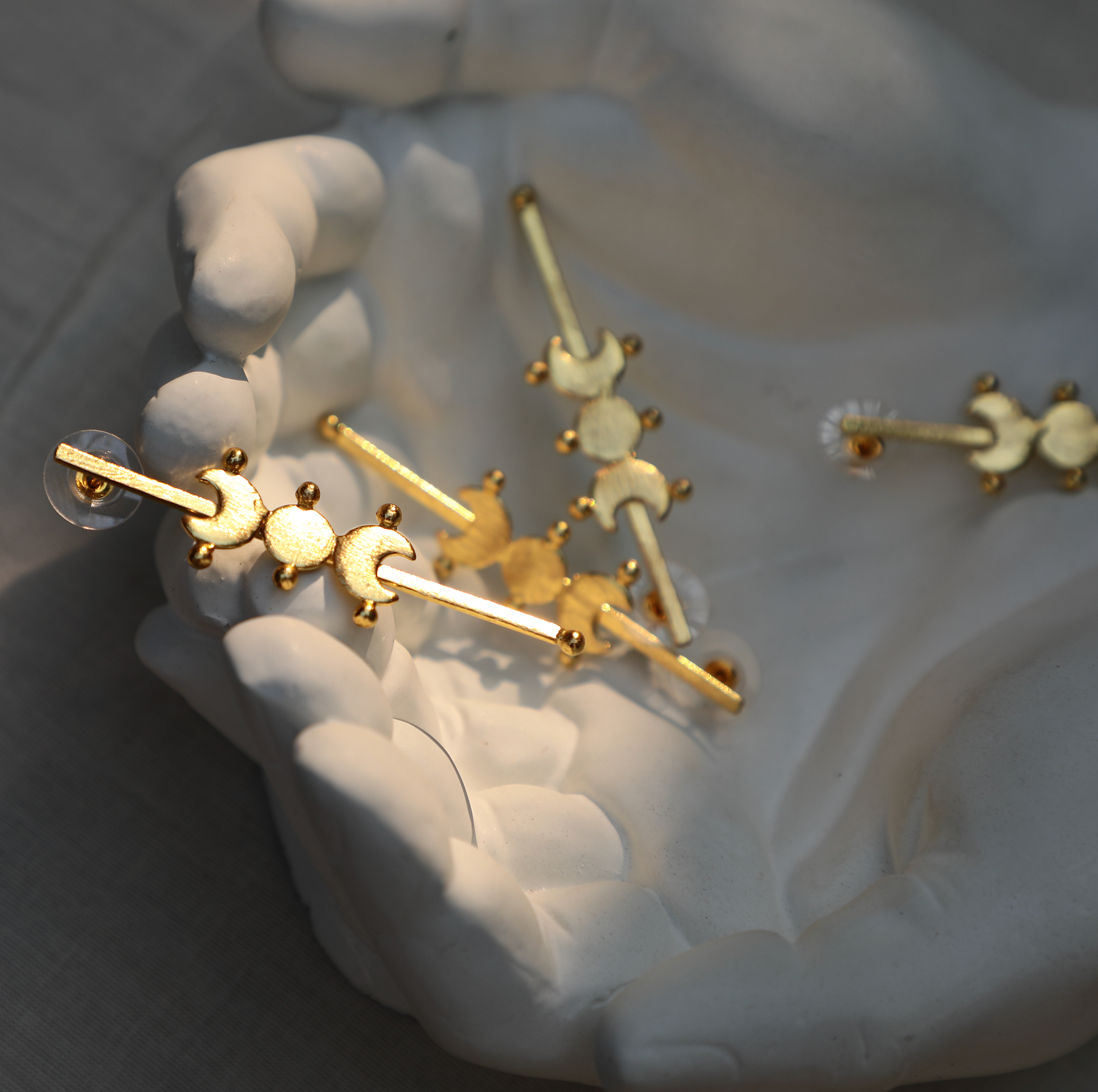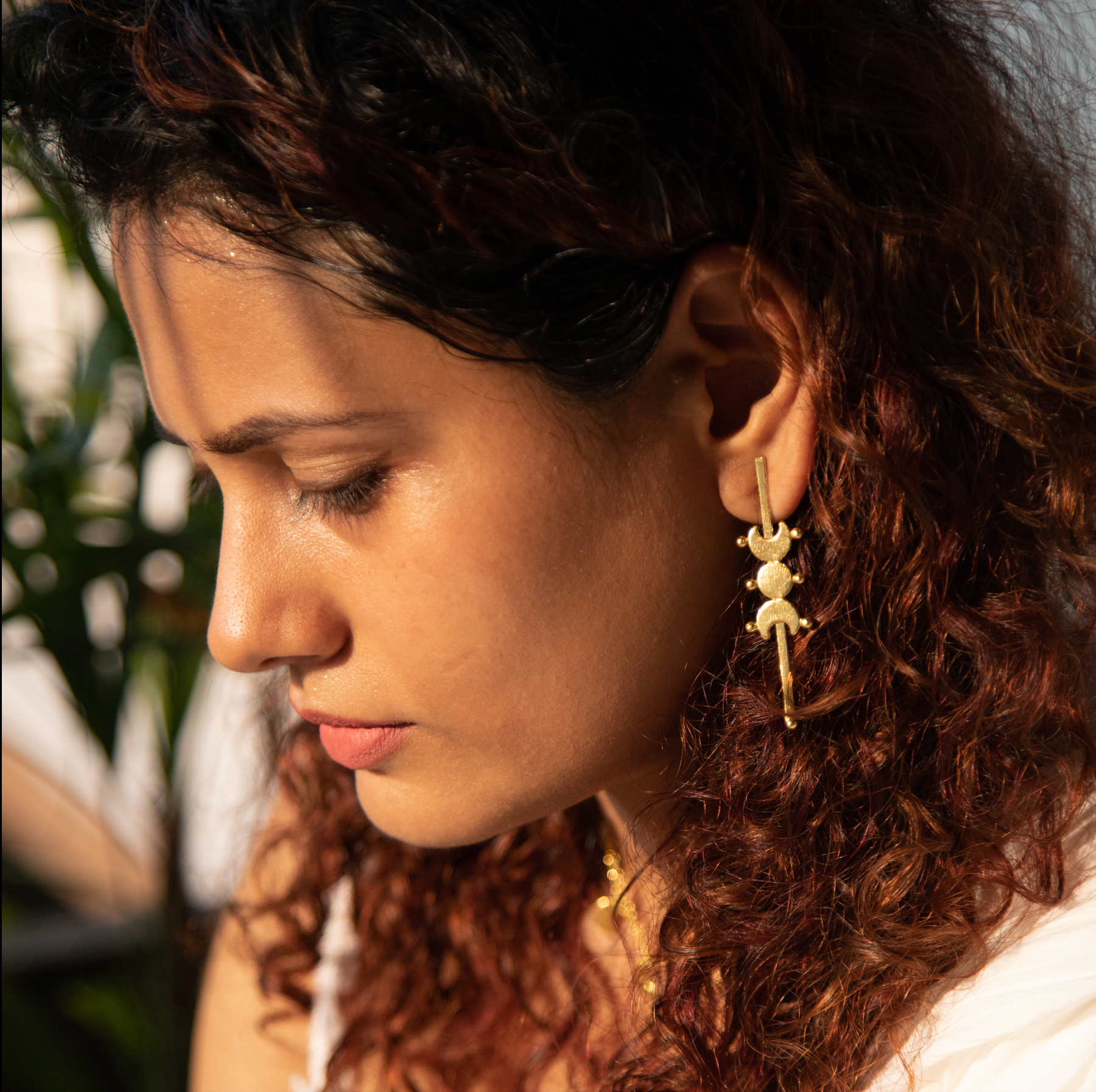 Looking for alternatives to danglers? Long bar earrings are a great alternative and, girl, do we have plenty of options for you! The dainty Nyla earrings feature a full moon with 2 delicate crescent moons on either side. And, if you’re a lover of matching jewelry, we’ve got you. Check out our Nyla Bangle and Som Kamal cuff.