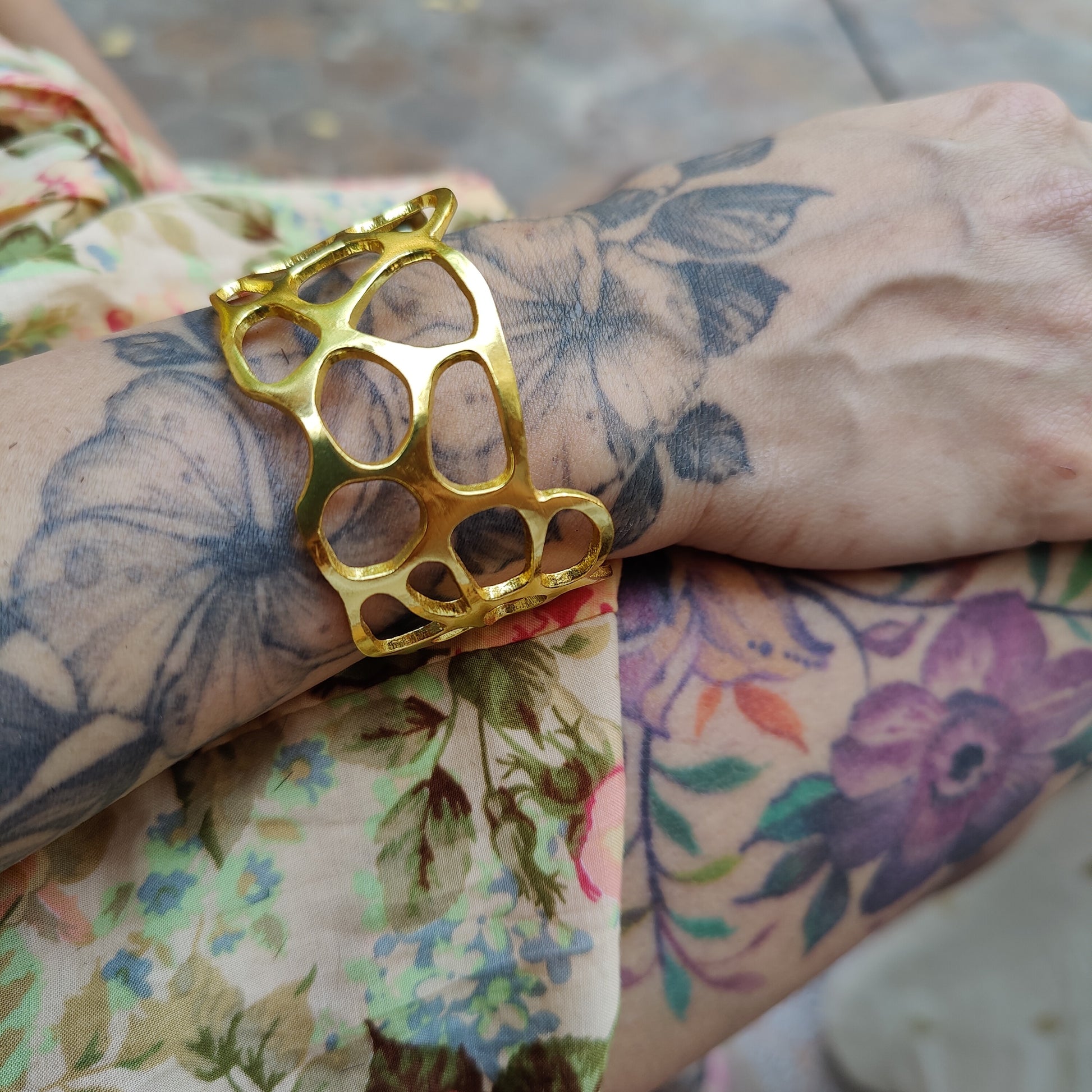 This beautiful piece of jewellery is water/sweat resistant and tarnish resistant. However, keep away from moisture when not in use, to increase the life span of the gold polish.
