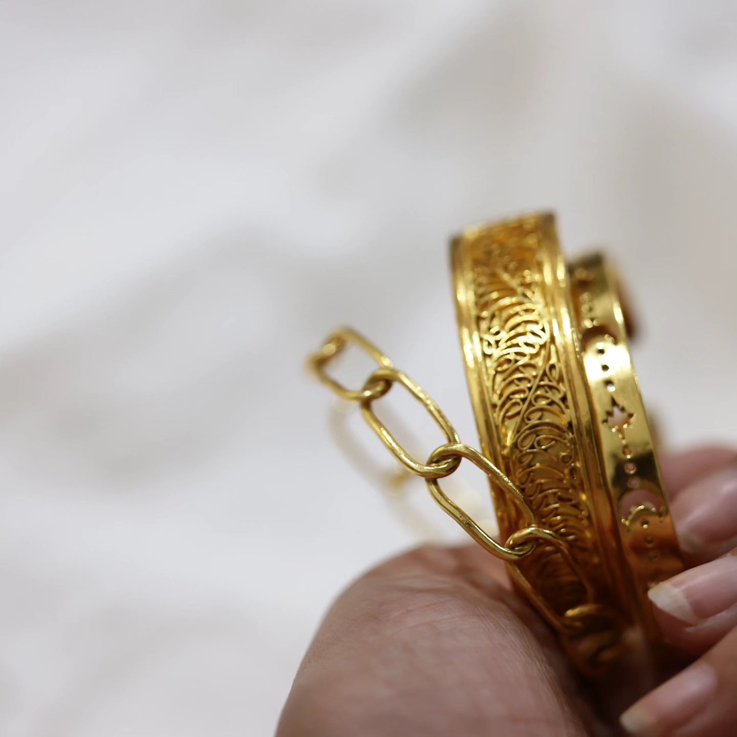 - Keep away from soaps, chemicals, water etc while in use and away from moisture when not in use, to increase the lifespan of the gold polish. We also recommend wearing your jewelry last while dressing to keep it away from damage caused by makeup, lotions, perfumes etc.