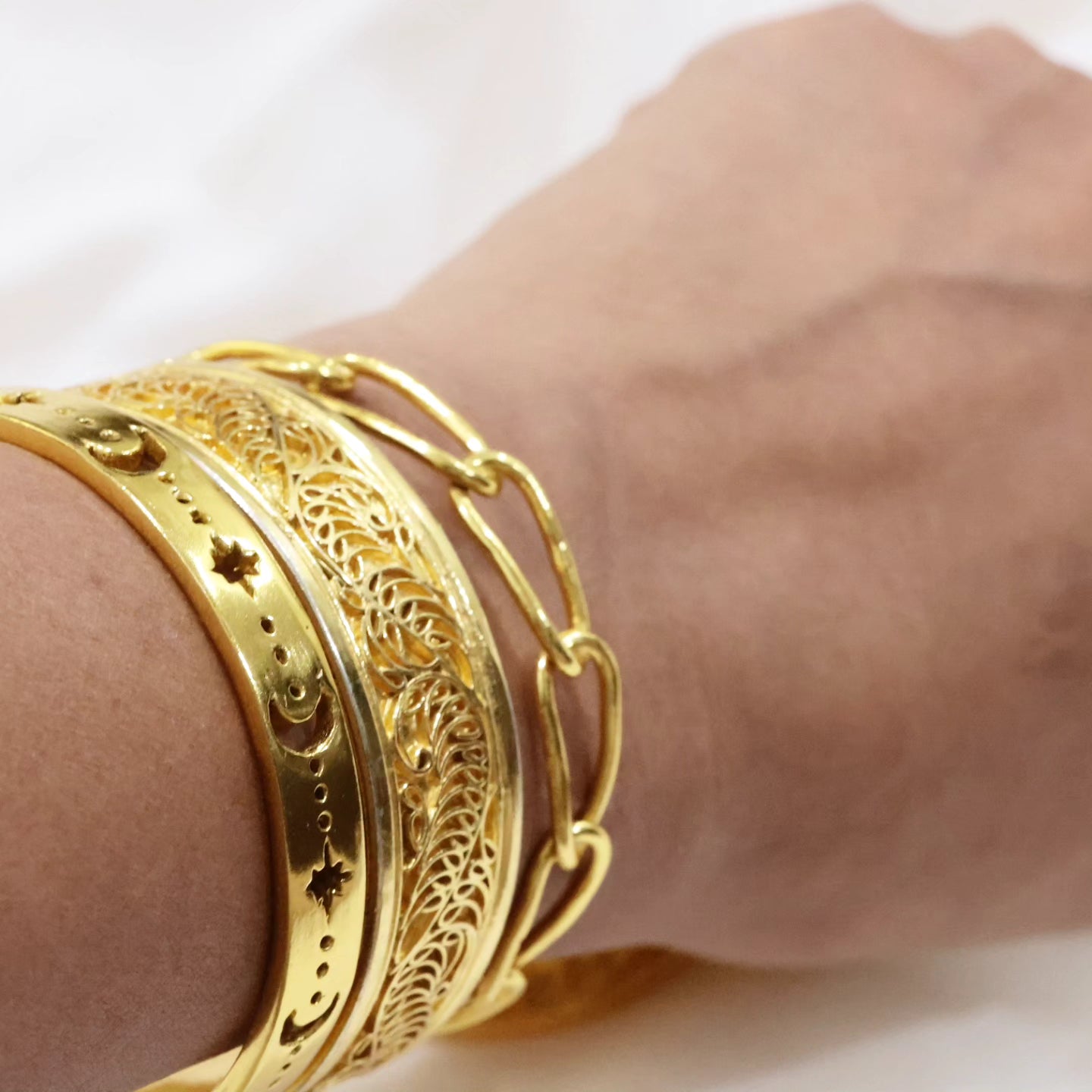 Please note that all our jewelry is handmade. This means every piece is unique and might have its own small imperfections since all pieces are hand cut, soldered, and plated manually by our gifted karigars.