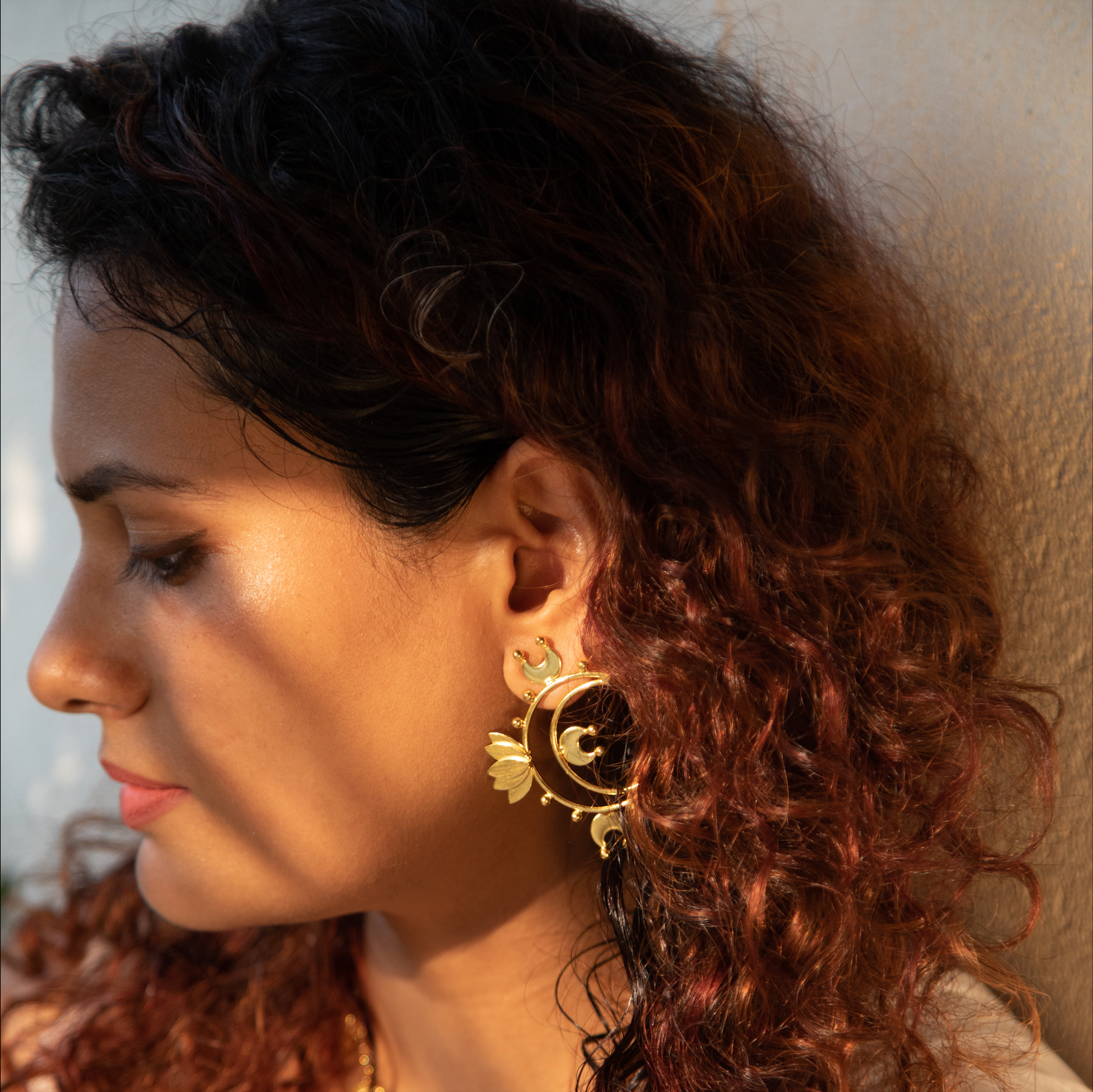 Make a statement with these signature earrings from our Som Kamal collection. With a distinctive crescent shape, it is adorned by dainty crescent moons and a Som Kamal charm. The perfect partner for our Som Kamal long chain <inbound link>, you can also wear these earrings on their own to add that extra oomph to any outfit.