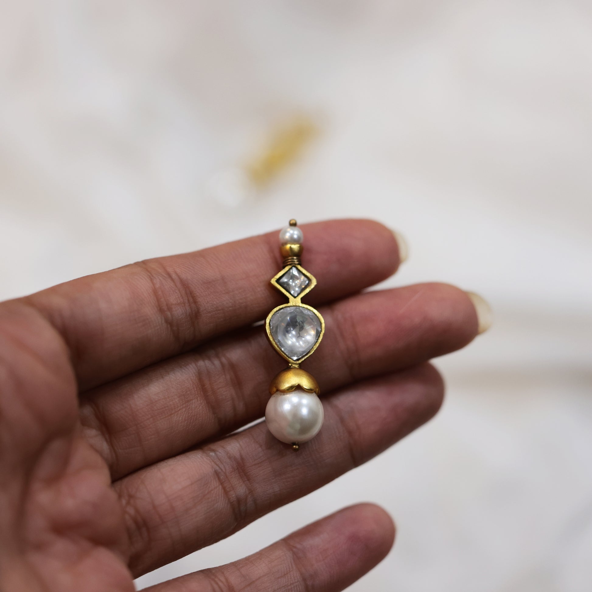 Please note that all our jewelry is handmade. This means every piece is unique and might have its own small imperfections since all pieces are hand cut, soldered, and plated manually by our gifted karigars.
