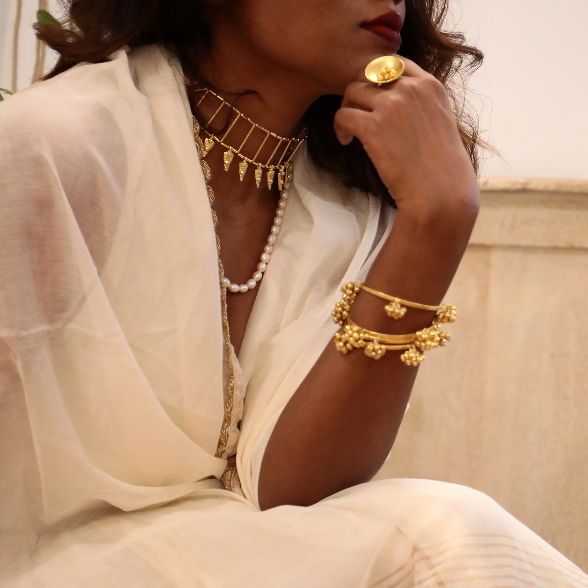 Please note that all our jewelry is handmade. This means every piece is unique and might have its own small imperfections since all pieces are hand cut, soldered, and plated manually by our gifted karigars.